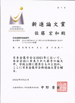 | 2022.9.20-23 日本金属学会第171回・日本鉄鋼協会第184回講演大会 【福岡工業大学】 / Year 2022 Autumn Annual Meeting Program |